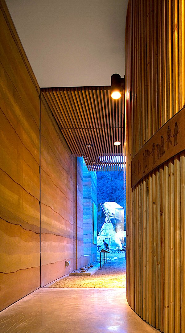 Over 100 tons of hanging rammed earth above the slot window