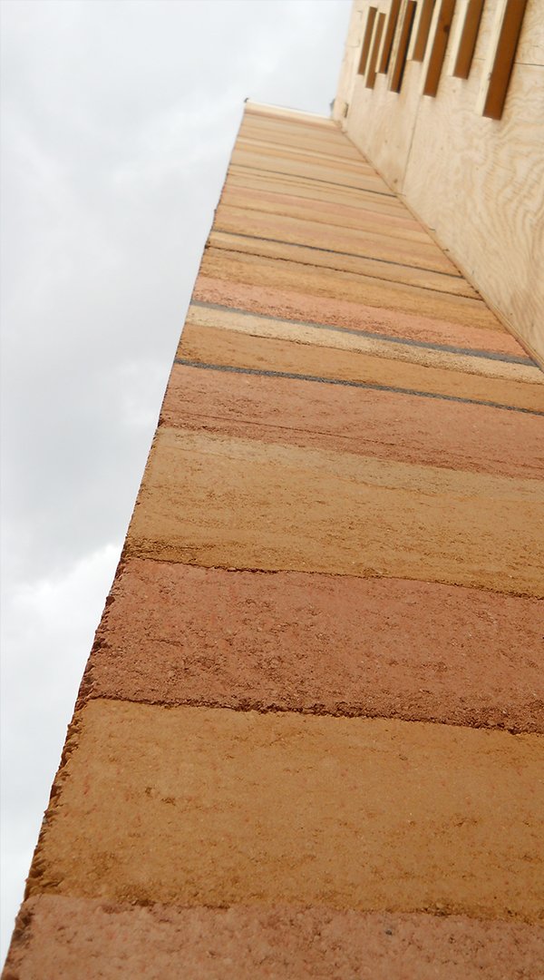 While each “stone” is visually independent of its neighboring stone, the insulation and horizontal rebar running on either side of the insulation, are continuous through all the stones.